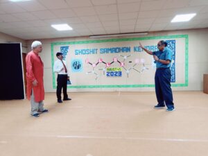 Shoshit Samadhan Kendra celebrated the ‘International Yoga Day’ on 21 June, 2023. Students of SSK demonstrated Surya Namaskar and various Asanas. Warm up exercises were taken and all students performed sitting and standing Asanas, importance of these were explained simultaneously by Mr. Nityanand Prasad, Yoga Instructor.